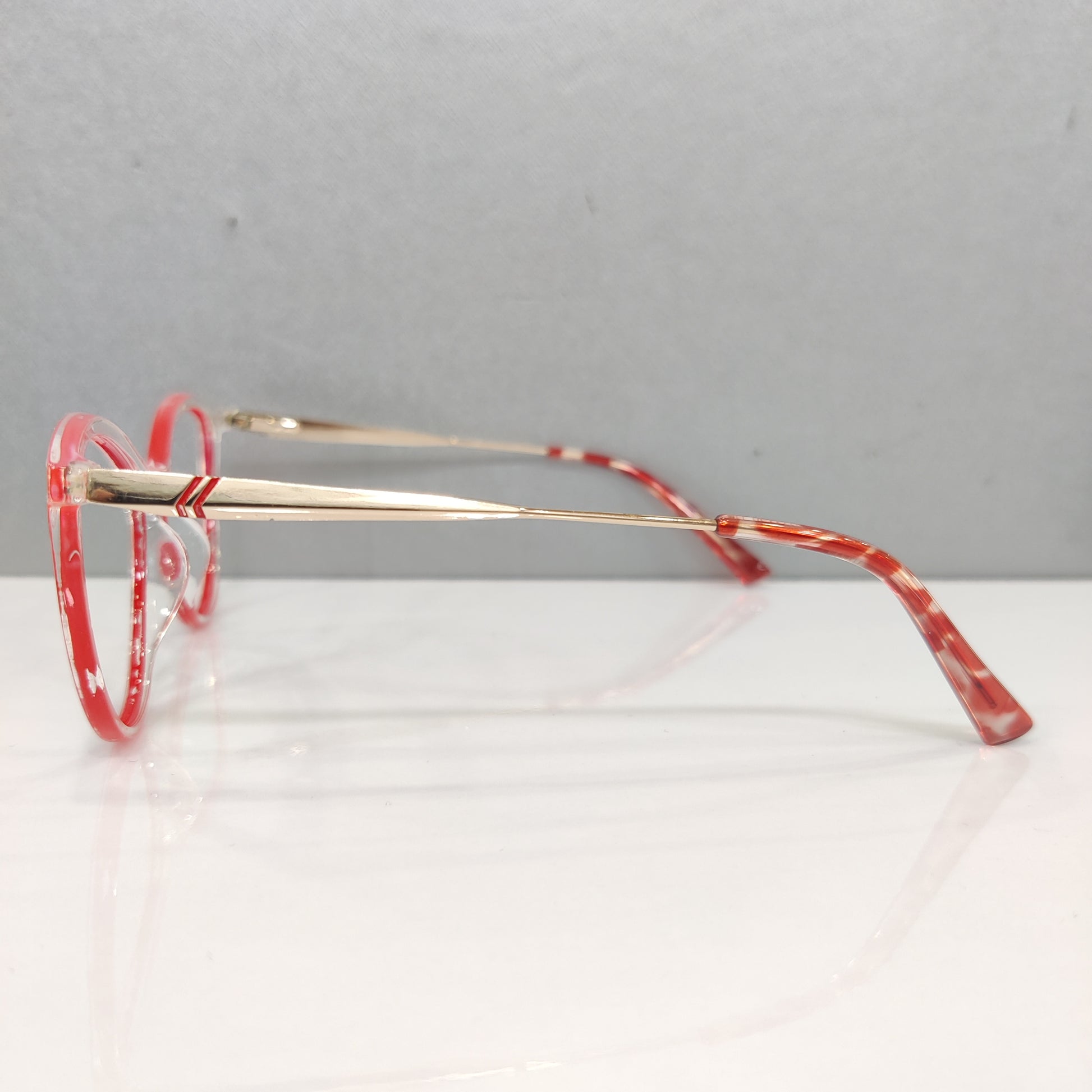 Golden temples add a hint of luxury, while the lightweight construction ensures all-day comfort without compromising on durability. The transparent design with red-toned inner arms enhances its playful charm, making it versatile enough for both professional elegance and casual flair.