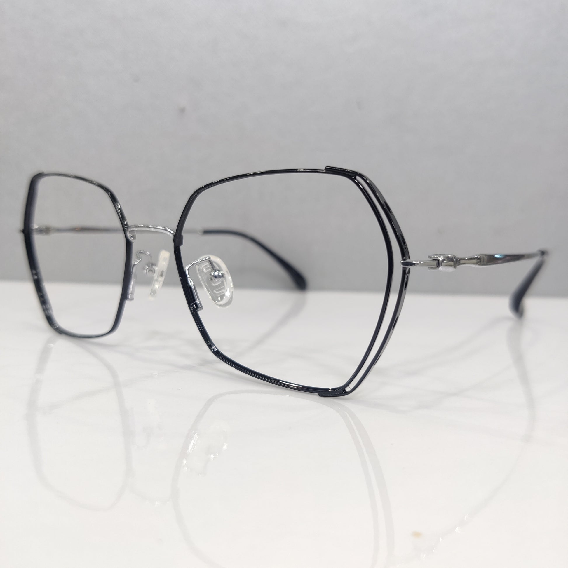 Step into modern elegance with the CrystalEdge Titanium frame, designed exclusively for ladies who love to stand out with sophistication. Its geometric butterfly-inspired shape gives a bold yet graceful look, making it the perfect accessory to complement both casual and formal styles.
