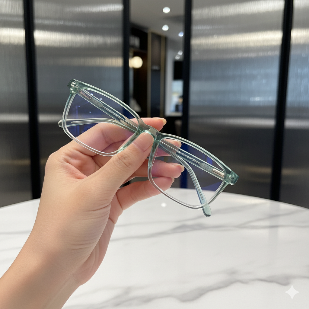 The refreshing green and transparent dual-tone adds a modern, airy feel while remaining versatile enough to pair with any look—from casual to professional.